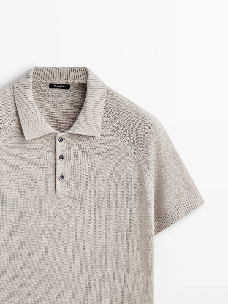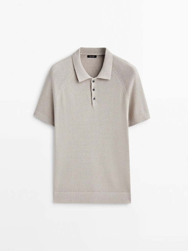 Massimo Dutti Pale Khaki Cotton Polo Sweater