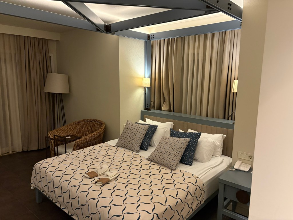 The rooms were generally clean, with housekeeping visiting several times a day, but they lacked a real “wow” factor. Each room had a small terrace with two chairs and a table, offering a nice outdoor spot to relax.