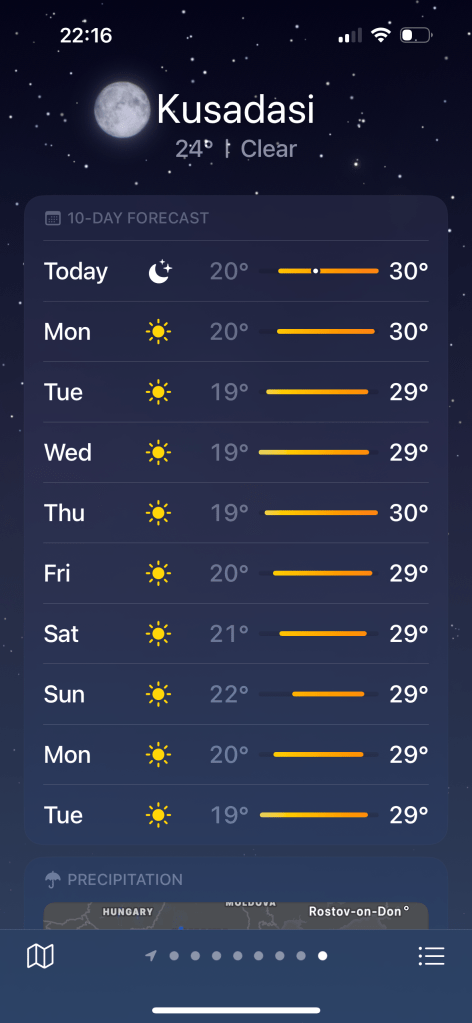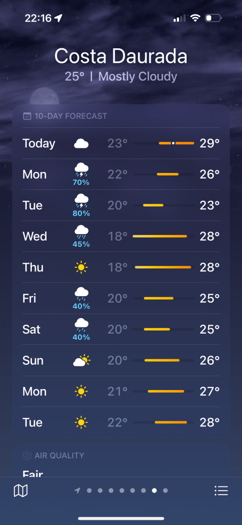 Finally, I checked my weather app on Sunday 7th September to take my final decision.
